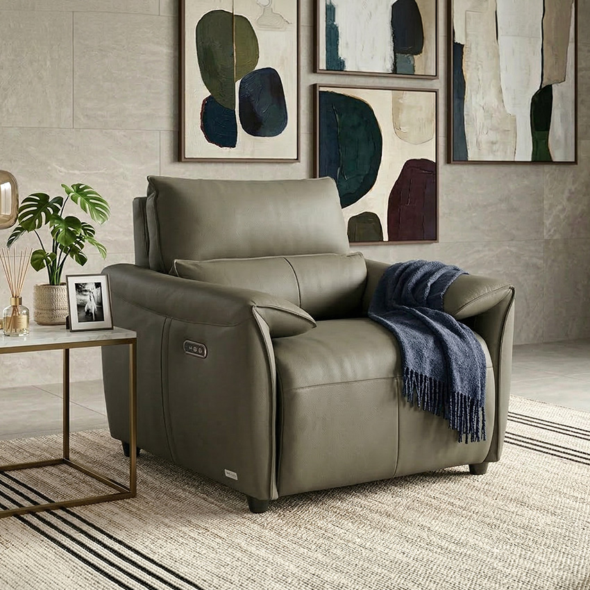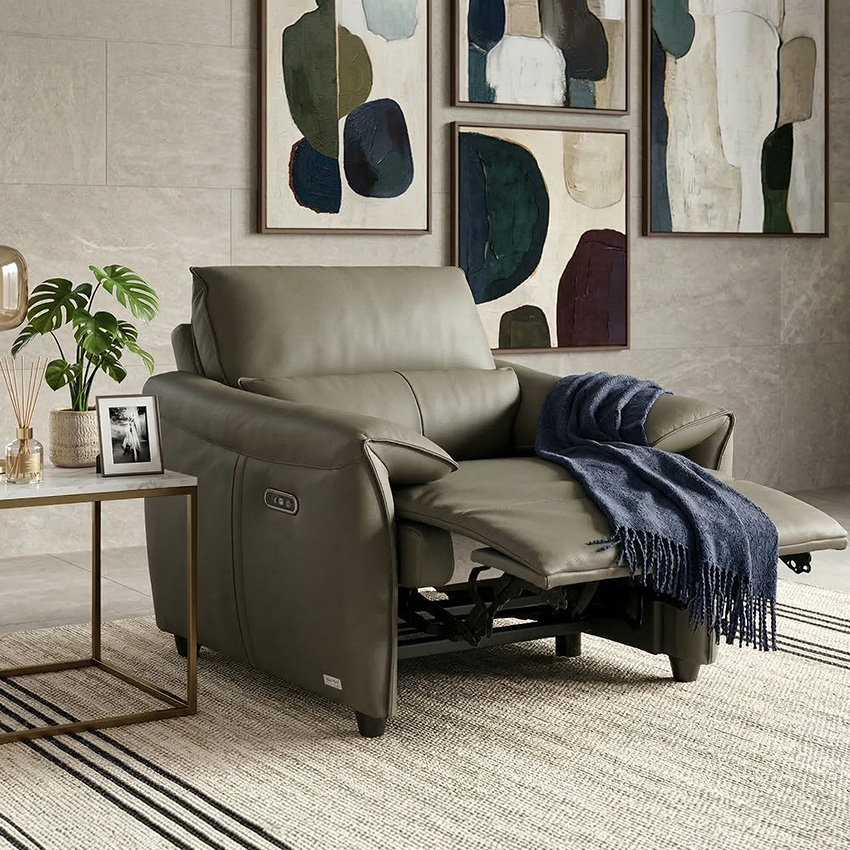 Lausanne-1S-Olive Leather Recliner Chair