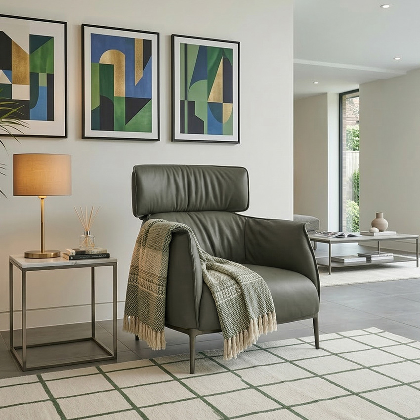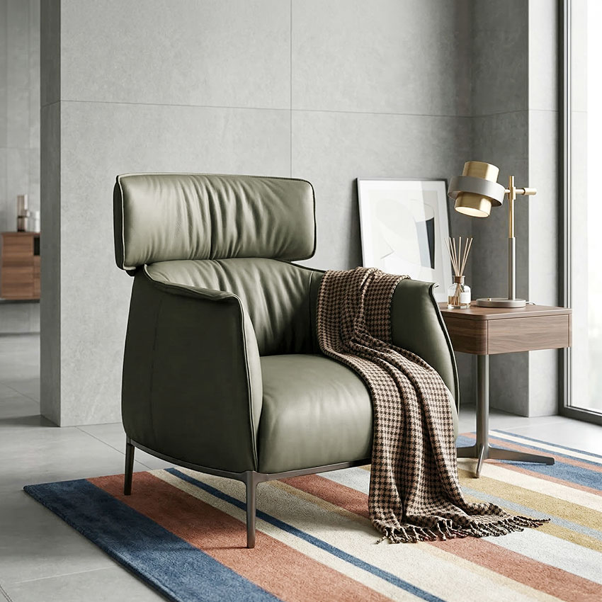 Santafe-Olive Leather Single Chair