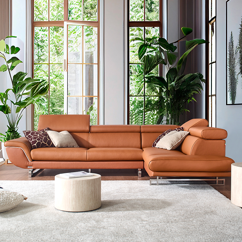 [ OUTLET ] Karl-Cognac Leather Chaise Sofa